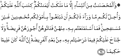 “Dan hamba-hamba kamu yang ingin membuat perjanjian untuk memerdekakan dirinya dengan membayar tebusan, maka hendaklah kamu membuat perjanjian dengan mereka jika kamu mengetahui ada kebaikan pada mereka…”